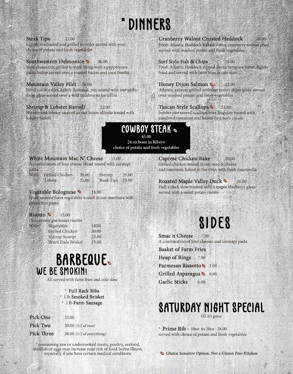 Nestled in Sanbornville, NH, Tumbledown Farm to Fork delivers a truly delightful dining experience that emphasizes farm-fresh ingredients and hearty flavors. The menu celebrates comfort food, highlighted by crowd-pleasers such as the BBQ Platter, featuring a generous ½ rack of ribs and BBQ chicken breast served with fries and baked beans for just $20. Their renowned Brisket Poutine received rave reviews for its indulgent flavors, while the Prime Rib special on Saturdays tantalizes meat lovers with a perfectly slow-roasted cut.